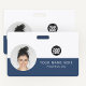 Easily personalize this Custom Horizontal Business Minimalist Employee Name Badge with Photo, Name, profession and business logo. A simple business design with round photo, in navy blue and white colors fully customizable in front and back with the same design, sans-serif basic and modern fonts and a professional and clear look. Avaiable with lanyard, metal clip or with retractable. No minimum order.