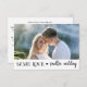 Add one of your favorite horizontal pictures to the front of the card, with the wording "Same love, smaller wedding" in black modern fonts decorated with a little black heart.