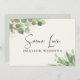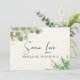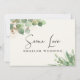 If circumstances require you to downsize and reduce the number of guests at your wedding, you can inform your original extended guest list with this beautiful and modern light cream downsized wedding announcement card featuring soft watercolors of light green eucalyptus leaves with gold accents and "Same Love Smaller Wedding" written in a stylish script and modern typography across the light cream front. On the light sage green back you can easily personalize the wedding downsize message in more detail and add any ceremony livestreaming, future celebrations and wedding website information.
