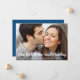 If circumstances such as social distancing require you to downsize and reduce attendance at your wedding, you can let your extended family and friends on your original guest list know that your wedding will go on but now on a smaller scale with this downsized wedding announcement. The front features your favorite engagement photograph and "Same Big Love, New Smaller Wedding" written in large contemporary white script across the bottom of your photo, and underneath you can personalize your names and the wedding downsize announcement. On the reverse side, you can personalize your message in more detail and add any livestreaming, future celebration and wedding website information, all in white typography against a classic blue background.