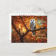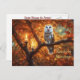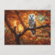 A stunning owl perched in a tree with fall-colored leaves, adorned with Samhain Blessings on the cover.
