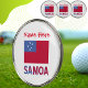 Personalized golf ball markers featuring the red, white and blue Samoan Flag with the word SAMOA underneath in the colors of the flag. Personalize, in red letters, with your name for a special touch. Or, create a customized gift by adding someone else's name. Fun for playing golf at family reunions, travel groups, and clubs.