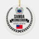 Lightweight, smooth, pure white ornament with nice sheen. Perfect size to be seen from across the room ... and to attract closer inspection! Price was great for ordering enough for the whole family! Clear, bold black design just as requested. Matches the order exactly. Just so nice!