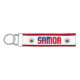 Samoa Flag Charming Patriotic Wrist Keychain with the two inscriptions "Samoa" infused with the pattern from the Samoa national flag placed opposite each other. Inside and outside of the Wrist Keychain are covered in the complementary colors. The Samoa Coat of Arms is placed on the left and the right side of the inscriptions making the design more dynamic. Coat of Arms are fully customizable or removable using "Customize it!" feature. If you are looking for a lovely design with the both coat of arms and the flag of Samoa in the one place look no further. Samoa Wrist Keychain is a great partner for your keys and the perfect gift for any occasion! © 2023 CountriesOfTheWorld