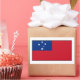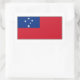 The Samoan flag is red with a blue rectangular area at the top left, featuring the five stars of the Southern Cross constellation. It was adopted in 1949, and has a 1:2 ratio.