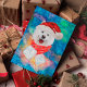 Samoyed Breed Dog Christmas features a watercolor of a Samoyed with a red Santa's Hat, a red Christmas scarf, and a galaxy watercolor.
