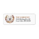 The left side of these return address labels feature a portrait of a beautiful white Samoyed dog. The image is enclosed within a pretty autumn floral and leaf wreath in tones of brown, tan, and cream. Your custom text is in black and gold brown at the right.