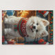Samoyed Dog With Christmas Gifts Fireplace Jigsaw Puzzle