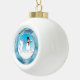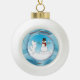 Samoyed Magic; Holiday Tree Ornament -Ceramic. Both sides of the ball are decorative.--one side with the Magic Sammy & Snowman at Play, your choice of tree bell, or poinsettia design on back. DeisignsbyLee.