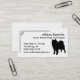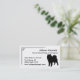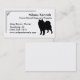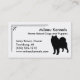 A simple black and white business card design featuring a silhouette of a Samoyed with a geometric pattern in the corner.