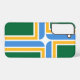 Crafted with precision and pride, this phone cover features Portland's official flag, designed with a unique green background adorned with a centered white four-pointed star encircled by four smaller white five-pointed stars. Symbolizing the city's spirit and community pride, this design captures the essence of Portland's identity.