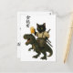 Samurai Cat with Beer & T-Rex | Retro Japanese Art Postcard