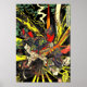 Samurai Fighting Dragon Antique Japanese Manga Poster