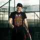 This design is of a samurai skull warrior and dragon. His face partially obscured by a helmet, surrounded by a fiery dragon's head. The samurai is holding two katanas. There is fire coming out of the dragons mouth, giving its a menacing vibe.