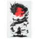 This artwork blends traditional Japanese motifs with a modern, dynamic style, making it a captivating piece for those who appreciate both historical and fantasy art. The contrasting colors of deep blacks, fiery reds, and stark whites add to the drama, creating a visual narrative that draws the viewer into the heart of the battle. The intricate detailing in both the dragon's scales and the samurai's armor speaks to the artist's meticulous craftsmanship, while the flowing lines and splashes of ink give the piece a sense of movement and intensity.