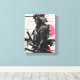 A digital art print featuring a samurai warrior in full armor, standing in profile against a white background with splashes of pink paint. The samurai is depicted in a stoic pose, holding two swords at his side. The image has a bold and graphic style, with sharp lines and contrasting colors. The pink paint splatters add a touch of dynamism and energy to the composition.