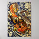 A very cool bold Samurai design. A Samurai swordsman fights a giant salamander. Great poster print for Asian style home decor design. From a 19th century woodcut.