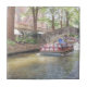 A tour boat takes visitors underneath a stone bridge on the San Antonio River Walk. This digital colored pencil drawing is based on an original photograph by Jayne Wilson.