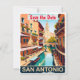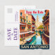 Capture the historic romance of the riverfront with this high-quality classic tourism art of San Antonio. The warm, old-world vibe is a stunning way to announce your Texas destination wedding or save the date invitation.
