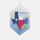 This ornament features the Texas state outline and flag color logo plus bluebonnets. This ornament has San Antonio which can be personalized by changing to any Texas city. Can also be transfered to ceramic or metal ornaments.