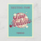 San Antonio Texas, Retro Vintage Design featuring a disco ball in pink, and apricot peach hues. This beautiful postcard is a perfect greeting card for San Antonio residents, visitors, tourists or fans.