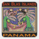 Kuna Indian mola, tropical islands, man in hammock, island monkeys, palm trees, San Blas Islands, Panama, Virginia Vivier, Vagabond Folk Art, black red blue, yellow orange green.
