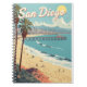This San Diego notebook features a vintage-style travel poster design, capturing the city's sunny, laid-back beach vibe. The cover showcases a classic beach scene with palm trees, surfers, and a pier, all with the downtown skyline in the distance. This spiral notebook is perfect for journaling, notes, or as a unique gift for anyone who loves the retro, coastal charm of San Diego.