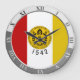 Great price for a very nice product. Arrived a day early - unheard of these days. The outside gold area has a little more orange tone to it than shown in the picture. Great packing so product can't get damaged. I used the same packing to forward the clock to my brother and sister-on-law for the 50th wedding anniversary. Printing was just as expected - lovely!