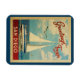 This Greetings From San Diego California vintage travel nautical design features a boat sailing on the water with seagulls and a blue sky filled with gorgeous puffy white clouds.