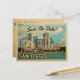 A unique neo vintage San Diego Save The Date postcard with tons of mid-century retro style. Your wedding guests will love this San Diego Save The Date, perfect for a destination wedding.