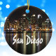 San Diego California Skyline at night from the water on this photo commemorative ornament. Celebrate memories of your vacation or a place that you love.