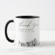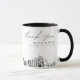 Modern San Diego skyline coffee mug favor gift with "thank you" script. The design showcases a stunning sketch with the ability to customize your names and exact location. Enter the Zazzle design tool for additional customizations.