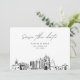 Modern San Diego black and white save the date invitation. The front showcases a stunning sketch, setting the perfect tone for your wedding day. Add your own photo to the back and customize the text to make it your own. Enter the Zazzle design tool for additional design customizations.