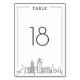 A unique wedding table number cards for a marriage taking place in the beautiful city of San Diego, California. It features a simplified table number resting above a stylized version of the famous city's unique skyline.