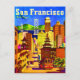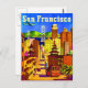 Bright and colorful, this vintage advertisement poster will grace your wall and brighten up the whole room. It portrays some of the highlights of the city. The bridge, China Town, the street car trolley system, and the hilly nature of the city.