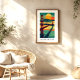 Fun bright artwork that really captures the mood I’m going for! Pop art with cyberpunk energy. A little sweet but also spicy. This art is the perfect size and vibe for our art gallery wall. The printing looks great, high quality with vibrant colors! I went with the semi-gloss finish, which adds a little extra shine and thickness to the print making it excellent for high-traffic areas like the staircase wall.