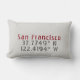 Modern, urban pillow design features latitude and longitude coordinates of San Francisco, California