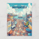 A vibrant postcard illustration capturing the lively charm of San Francisco’s waterfront. Bustling streets lead down to the bay, where a grand white-sailed ship glides across the sparkling water. Historic buildings with colorful awnings and classic architecture frame the scene, while cheerful crowds stroll beneath bright blue skies filled with soaring seagulls. Evoking both nostalgia and energy, this artwork celebrates the timeless spirit of San Francisco’s seaside culture. You can customize the text.
