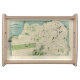 This is a well made, sturdy wooden tray with a flawless black finish and lovely map on the tray surface. It is both vintage & modern at the same time. Looks exactly like the photo; does not disappoint. So nice to find something of quality individually made and not the mass-produced 'shabby chic' merchandise seen in stores. I am so pleased to be able to give this to my college-age niece for her birthday. This can be used as a tray to hold jewelry or toiletries, or hung on the wall as art. The map surface is sealed (it is slightly shiny) so would be moisture resistant. It is well worth the asking price but I was able to apply a sale code as well. Very happy with my purchase. Map is crisp & clear and sealed with a water-resitant finish.
