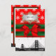 For the Christmas holiday: Customizable invitations, cards and party accessories with an etched look water view of the San Francisco skyline with snowflakes against a red background and red and green satin look ribbon.