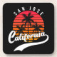 San Jose coaster with a retro design that features a sunset and palm trees on black background (customizable bg color). This design also has California in a handwritten font with a swash tail glyph for that stylish retro look. These coasters are just for you if you're from San Jose or you can get as a gift or souvenir for someone.