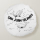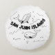 Simple cartoony design with wales, bubbles, and waves and "San Juan Islands" written in bold text.