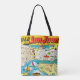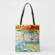 A vintage, very colorful postcard map of San Juan, Puerto Rico repurposed all over a wonderful shoulder tote.