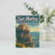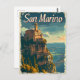 A charming vintage portrayal of San Marino, one of the world's oldest republics and a microstate surrounded by Italy. The design captures the historic architecture of San Marino's ancient hilltop city, with its medieval walls, towers, and narrow cobblestone streets. Rendered in a nostalgic style, the artwork evokes the timeless charm and cultural richness of this unique enclave, inviting viewers to explore its historical significance and picturesque landscapes.