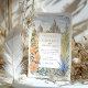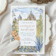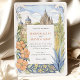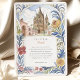 Invite your guests to a magical celebration with this enchanting watercolor wedding invitation, capturing the vibrant spirit of San Miguel de Allende, Mexico. The artwork beautifully showcases the iconic Parroquia de San Miguel Arcángel, with its stunning pink and terracotta Gothic spires, flanked by charming colonial-style buildings in warm hues of yellow, orange, terracotta, and soft pinks, featuring characteristic arched doorways and balconies. Lush green cacti, stylized trees with green, lavender, and light blue-green foliage, and delicate green bushes add to the picturesque scene. Stylized golden-yellow tipped leafy branches frame the composition. Rendered in a soft, romantic watercolor style, this invitation is perfect for a destination wedding in Mexico or for couples who adore vibrant culture and picturesque colonial charm. The front elegantly presents your wedding details, while the reverse side offers "The Finer Details" for additional guest information. The color palette is a delightful mix of warm terracottas, pinks, sunny yellows, oranges, various shades of green (including sage and olive for cacti/bushes, and brighter greens for trees), lavender, light blue-green, golden-yellow accents, and soft sky blues and creams.