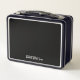This is a standard metal lunchbox that appears to work just fine. We designed this box ourselves with an uploaded photo and custom text on the front and back. It looks absolutely beautiful except the front of the lunchbox is not centered like it shows in the photo. The print borders don't align with the inset flat part of the box where the preview photo online showed it perfectly centered in there. The back looks nice and centered though.