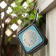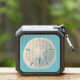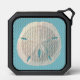 Portable Bluetooth speaker, with graphics of a sand dollar against a sky blue background.
