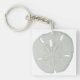 Beautiful white sand dollar print key chain. Carry a tropical beach vacation souvenir with you wherever you travel.
