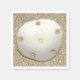 A soft white and cream sanddollar sitting on sparkling gold glitter look beach sand. A pretty ocean them.