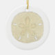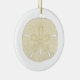 This nautical ornament features a lifelike sand dollar icon. Sand dollars are also known as sea biscuits. These unique sea creatures are related to sea urchins, sea cucumbers, and starfish.